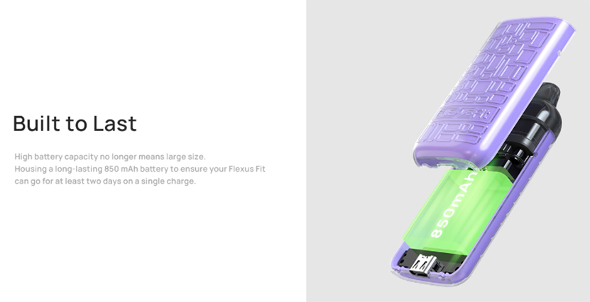 Flexus Fit Kit is designed with compact size and exquisite appearance. It is powered by a built-in 850mAh battery with Type-C 1A quick charging. It has 3.5ml capacity and leak-free bottom filling system. Flexus Fit is compatible with replaceable AF 0.6Ω/1.0Ω Coil for RDTL/MTL vaping. It also comes with a unique air inlet system and advanced coil technology to serve you better. In addition, it is made of double-colored injection molding materials to bring you comfortable grip. Equipped with the Aspire ASP Chipset, it can guarantee the safe use of the Kit. Just get it.
