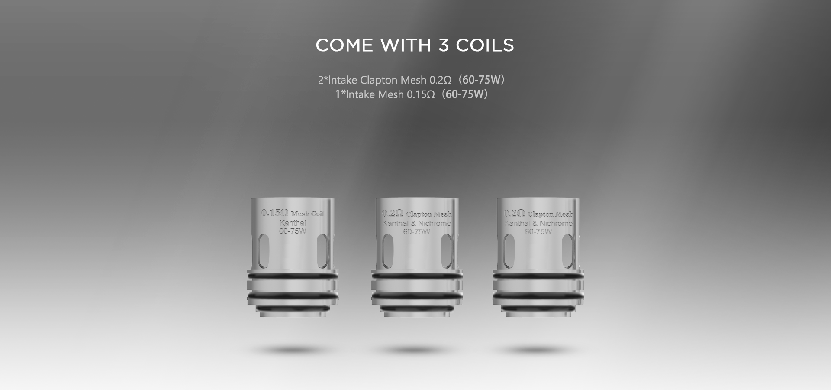 | Coil Type | 0.2ohm innovative clapton mesh coil, 0.15 mesh coil |