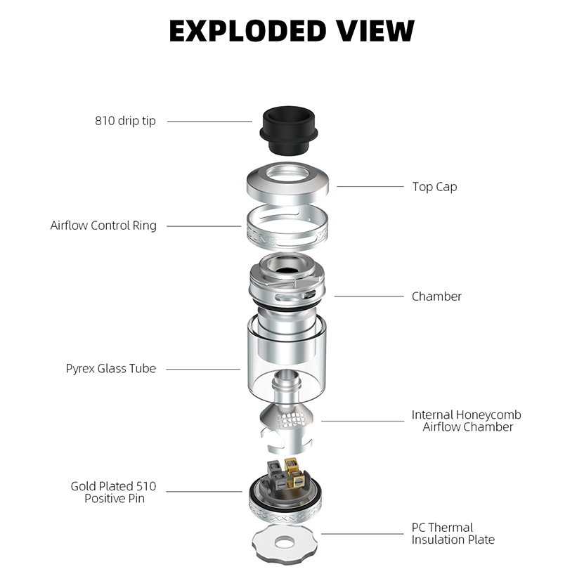 Dead Rabbit V2 RTA is the upgraded version of original Dead Rabbit RTA. It is built with 25mm in diameter and comes with Y style "Rabbit Ear" deck that is designed for cutting coil legs and square post holes and supporting both single or dual configurations. With precision machining and knurled top cap, it will bring an efficient push-style top-fill system. And the upgraded adjustable top side diagonal honeycomb airflow will provide great and minimize leaking. Featuring integrated deck with anti rotation, which make airflow direct to coils and provide great vaping experience. In addition, with a PC thermal insulation plate, it can insulate mod from heat and prevent the mod from being scratched. The capacity is 5ml.