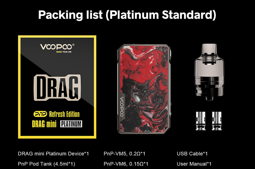 VOOPOO Drag Mini Platinum Refresh Starter Kit Details: